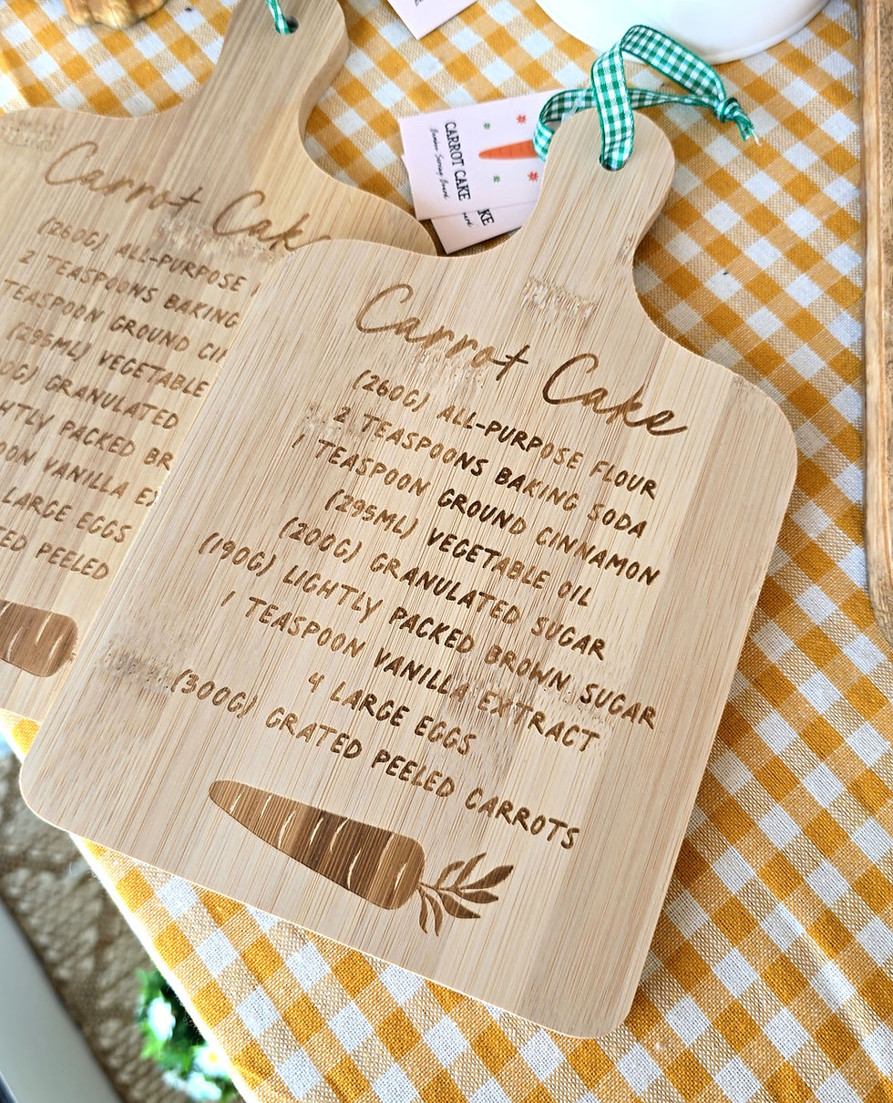 Tagliere in legno con ricetta Carrot Cake